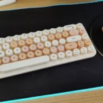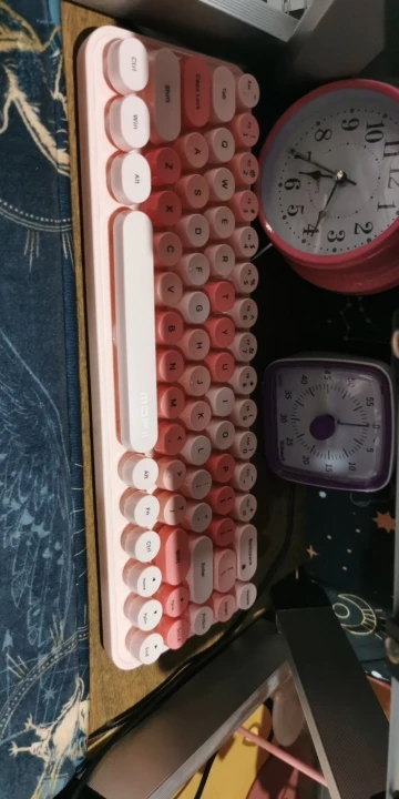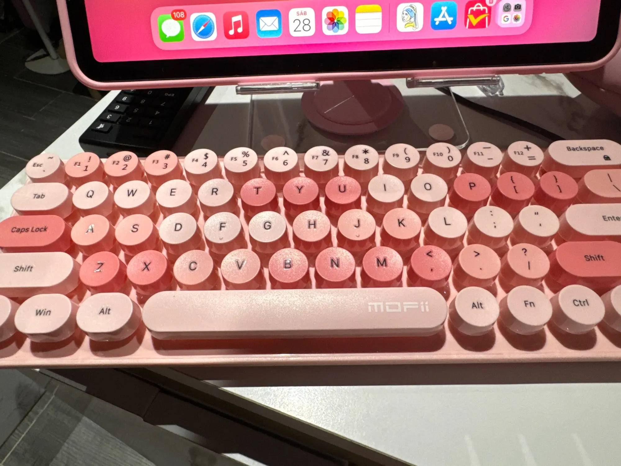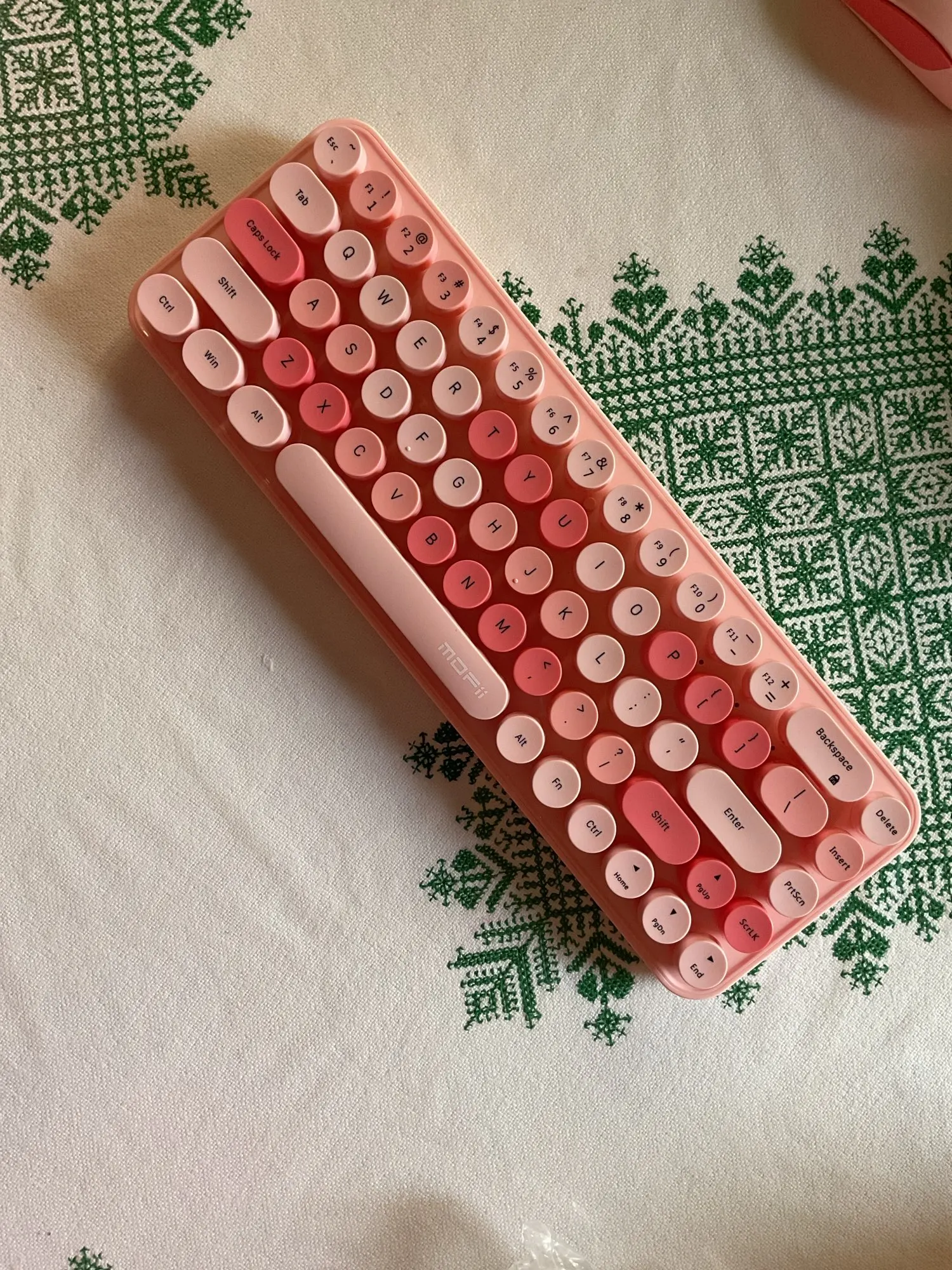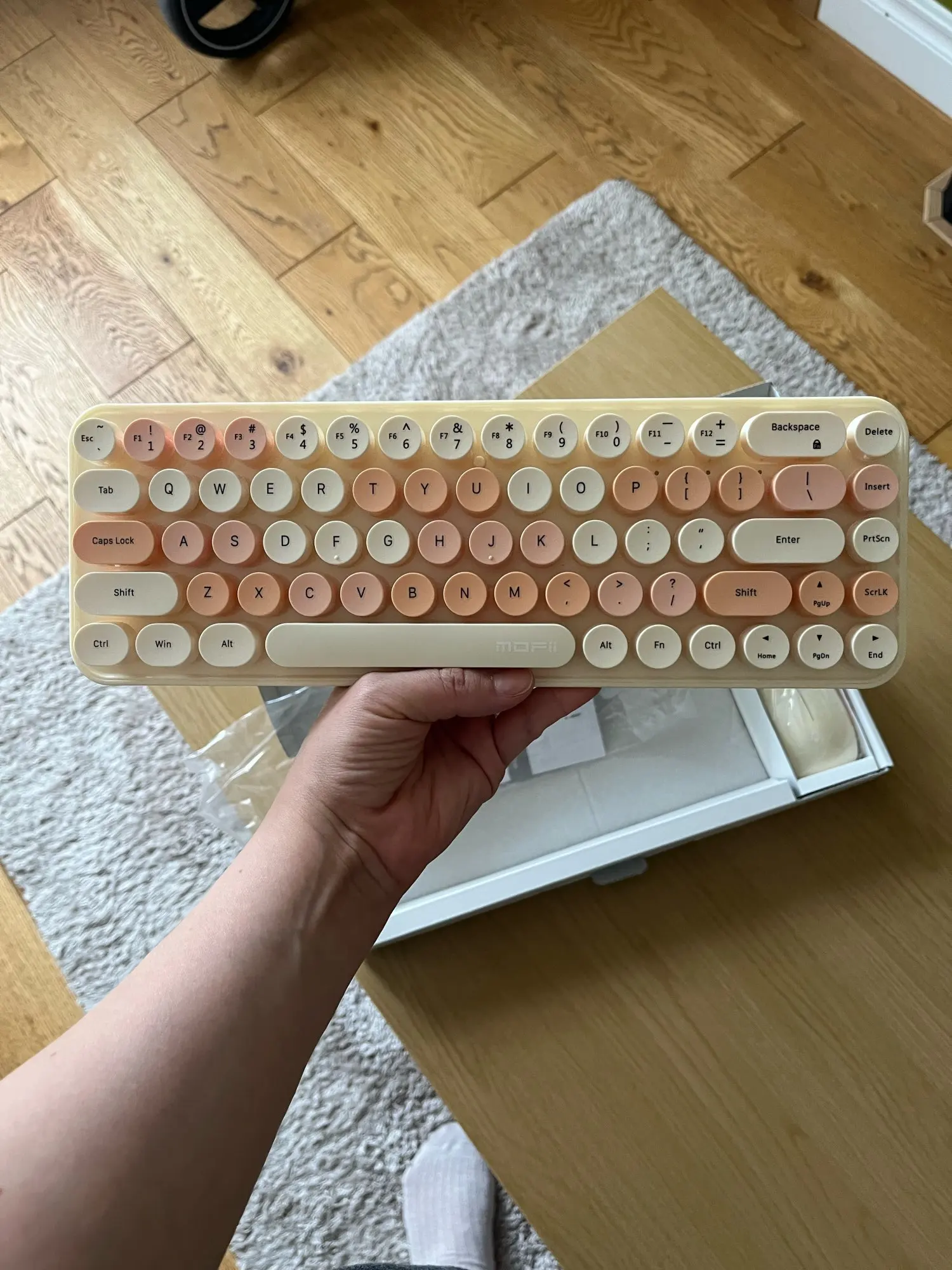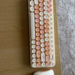 Been using it for few weeks now and connectivity is good, the typing is quieter than expected with a soft click. It’s very cute and good. You will need wrist pad to type on this elevelated keyboard for comfort.