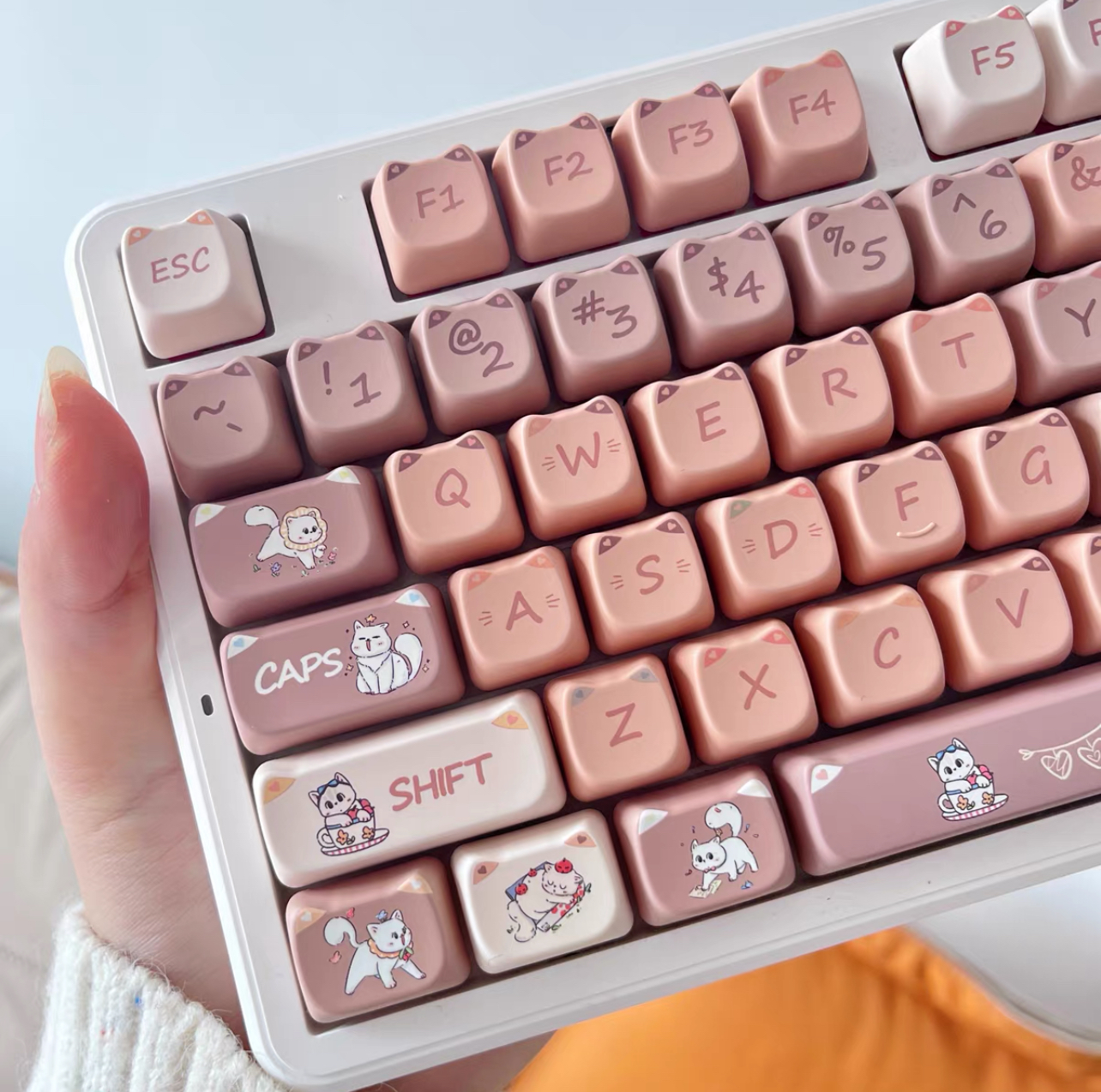 Kawaii Mao Profile Coffee Cat Keycaps Set (140 Keys)