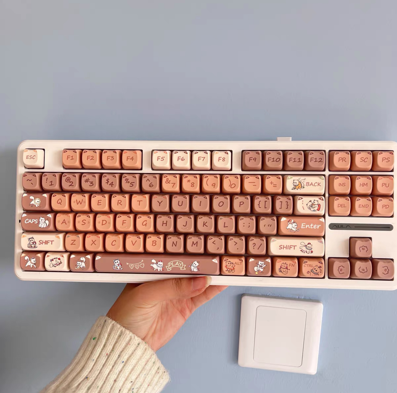 Kawaii Chocolate Cat Themed Mao Profile Keycaps (140 Keys)